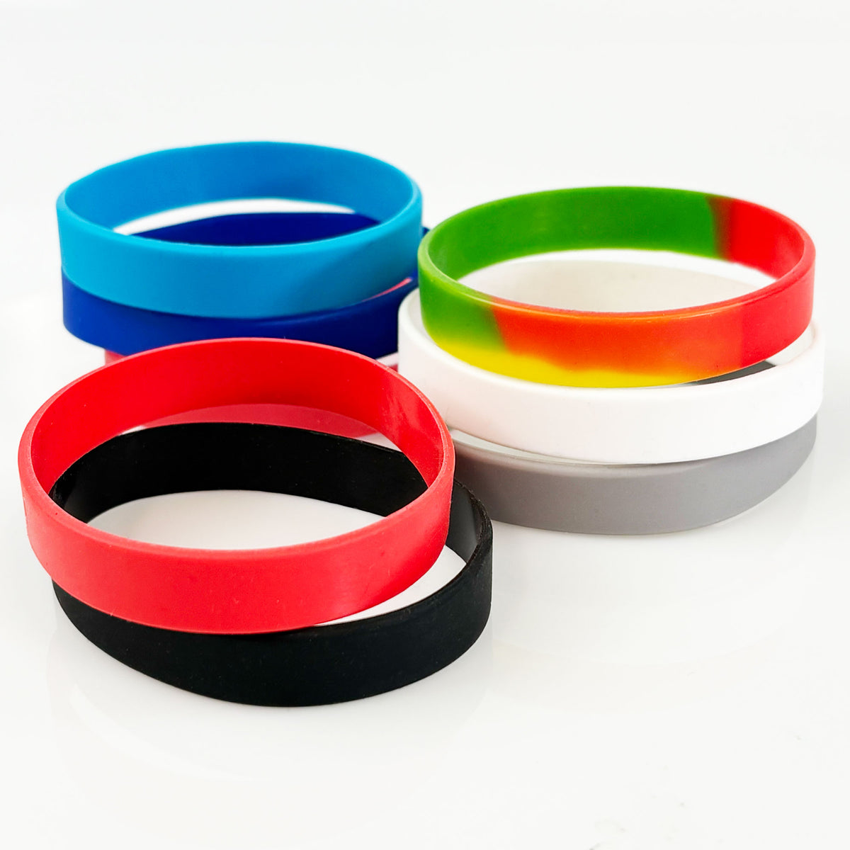 - Solid-color silicone wristbands available