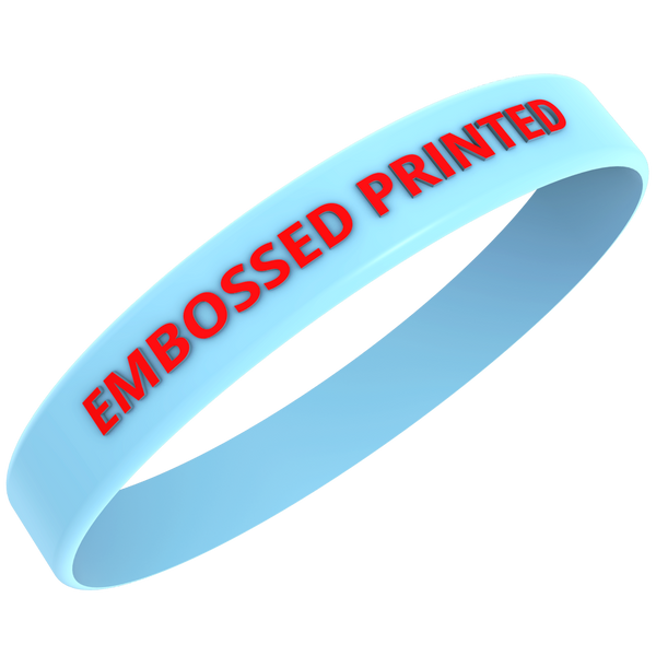 Embossed printed wristbands — raised designs with full-color silk-screening for standout visibility.