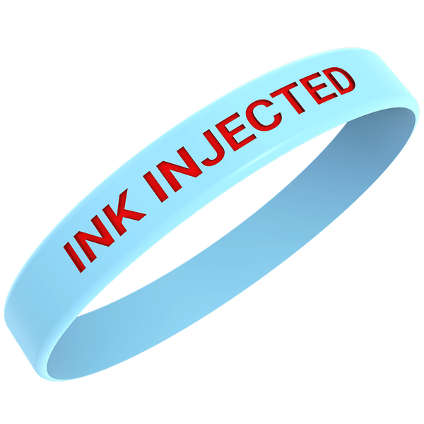 Long-lasting ink-injected silicone wristbands — durable colors etched directly into the band.